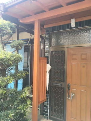 40年以上前に建築されたA様宅の玄関屋根は当時流行りの箱型庇です。今まで、ご主人何度も塗ってきましたが、かなり木自体が、老朽化してきましたので今回リフォームのご依頼を頂きました。