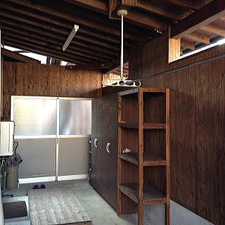 家族の出入口である勝手口廻りです。下駄箱、家庭野菜置き場、自転車置き場、雨の日の洗濯干場がありますリノベーション前(右)