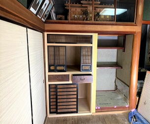 古民家に住む両親は年を重ね、病院への送り迎え、食事の支度など今まで通いでお手伝いをされてきましたが、同居を決め、水廻り(キッチン、浴室、トイレなど)を、一階の洋間をリフォームして造作し、二階は収納、クローゼットを造り寝室にしました。