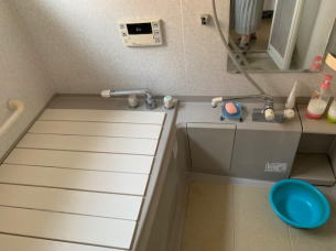 内装のリフォームはもちろん、床下より全部交換しています。また床下、天井には断熱材を施工しました。浴室の入口もバリアフリーに施工しました。(この後、リクシルの浴室用3連引き戸を取り付けます。)