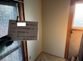 耐震改修工事補強予定壁に構造用合板を施工 | 耐震改修工事(仕上げ)耐震改修工事後、元に近い形に仕上げ施工 | |